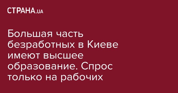 Количество безработных в Киеве по состоянию на 1 апреля сократилось на 15,6% по сравнению с соответствующим периодом прошлого года и составило 9,3 тыс. чел. При этом значительная часть безработных - лица с высшим образованием.