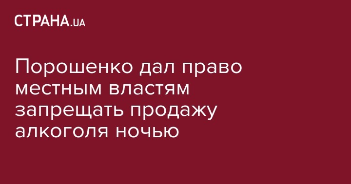 Президент подписал законопроект №314, который предлагает предоставить полномочия органам местного самоуправления устанавливать запрет по продаже алкогольных напитков в ночное время, кроме заведений ресторанного хозяйства.