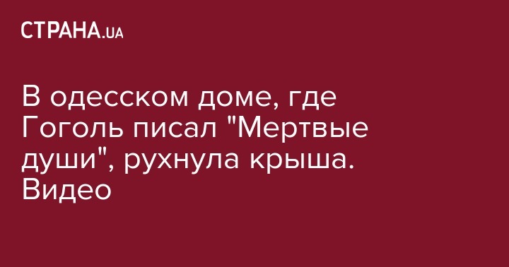 В одесском доме, где Гоголь писал "Мертвые души", рухнула крыша. Видео