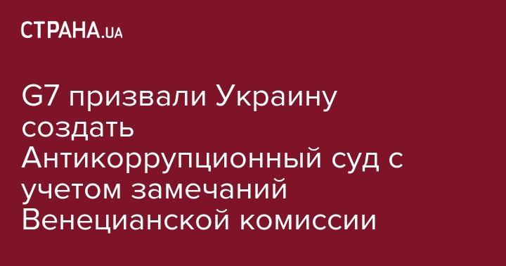 Страны Большой семерки призвали Украину создать Антикоррупционный суд с учетом рекомендаций Венецианской комиссии.