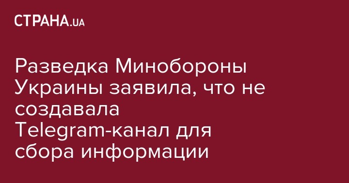Главное управление разведки Министерства обороны Украины опровергает создание в мессенджере Telegram собственного канала для сбора информации.