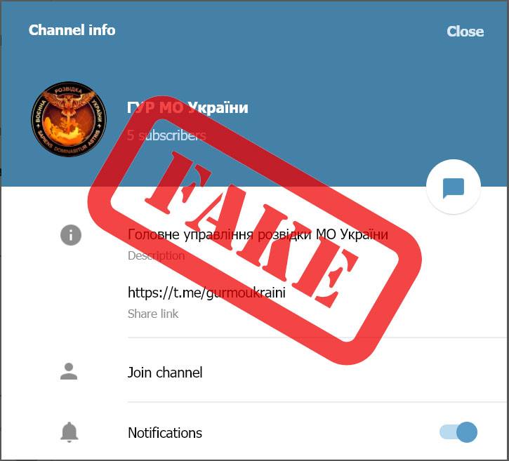 "В мессенджере Telegram создан канал, который якобы принадлежит ГУР МО Украины. Служба по связям с общественностью ГУР МО Украины уполномочена заявить, что указанный канал не принадлежит Главному управлению разведки Министерства обороны Украины. Размещенная в нем информация является фейковой и провокационной", - говорится в сообщении.