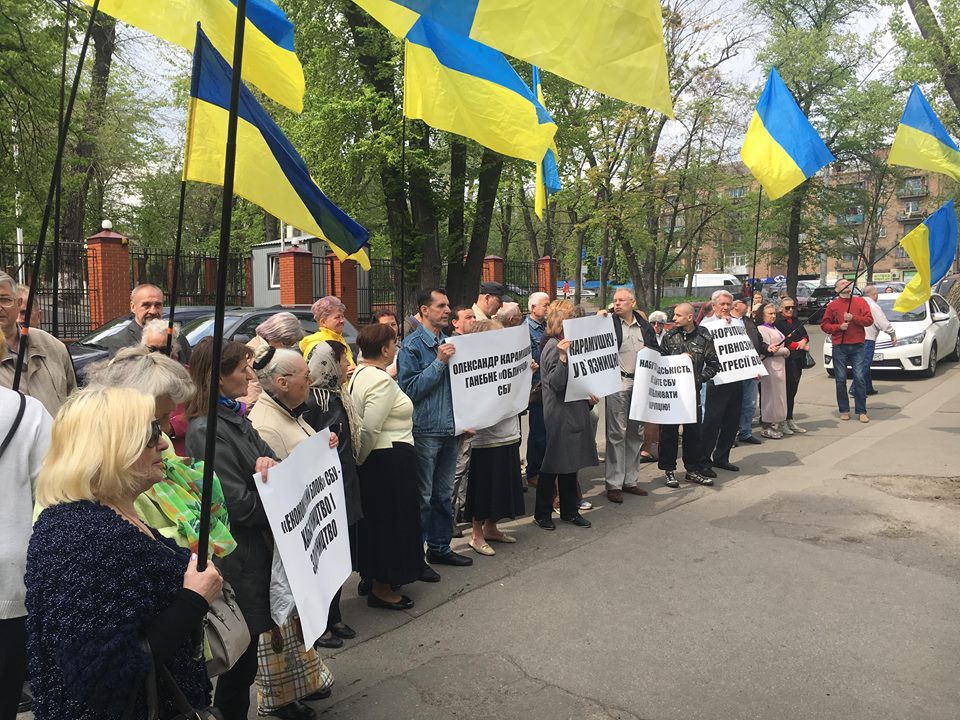 Перед началом заседания под зданием суда прошел пикет, протестанты требуют мру пресечения для Карамушки в виде ареста, а также реформирования СБУ.