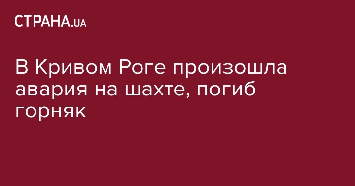 В Кривом Роге произошла авария на шахте, погиб горняк