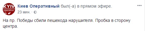 На проспекте Победы в Киеве сбили пешехода - нарушителя, пробка в сторону центра
