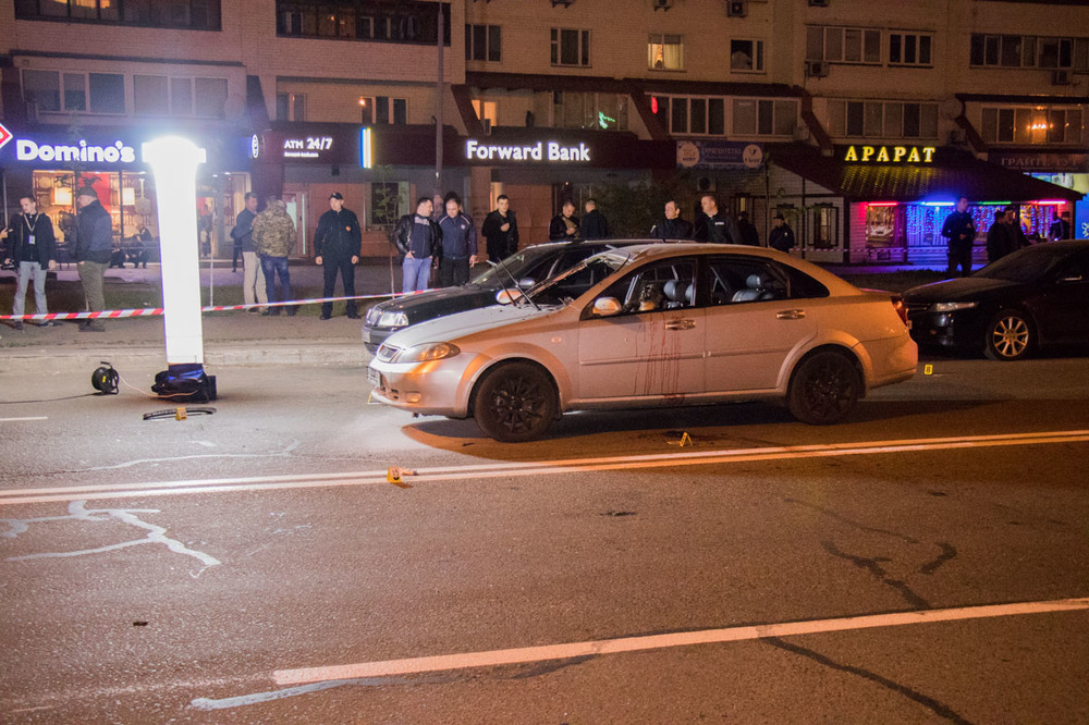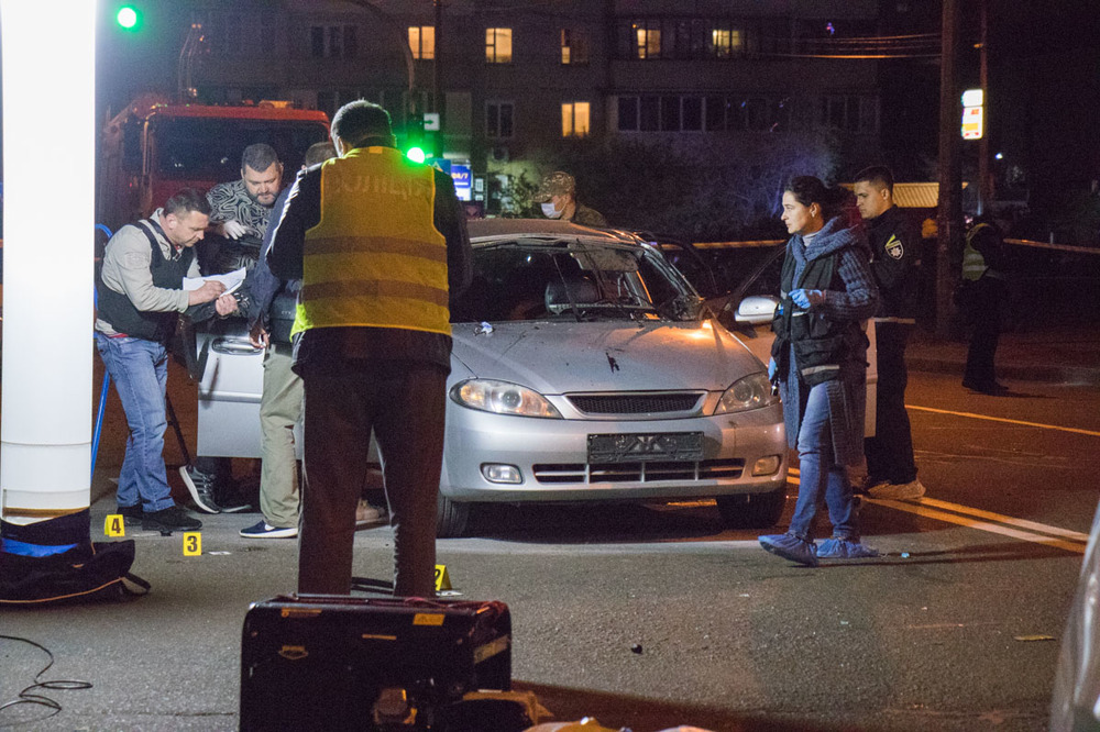 На место происшествия выехали взрывотехники, следственно-оперативная группа и спасатели. Они обнаружили серый Chevrolet Lacetti с вылетевшим лобовым стеклом, внутри которого находились двое киевлян.