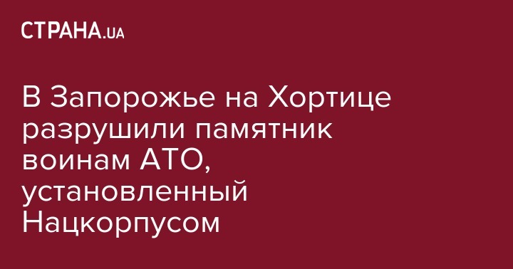 В Запорожье на Хортице разрушили памятник воинам АТО, установленный Нацкорпусом
