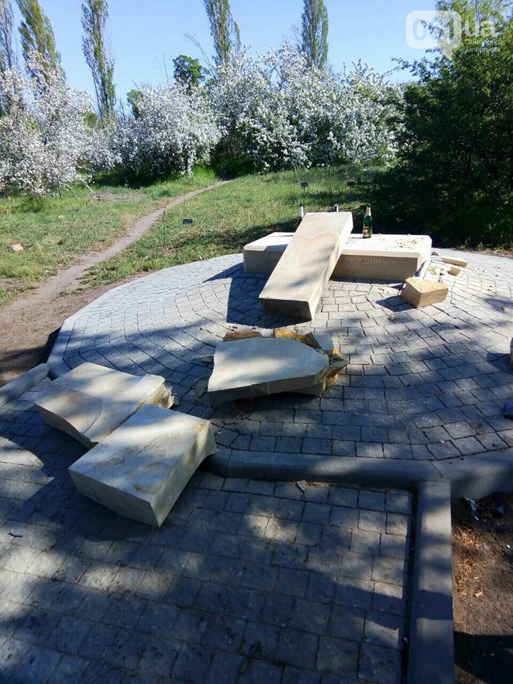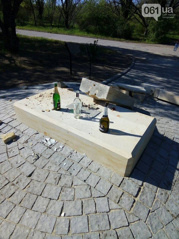 Памятник, установленный на острове Хортица, разрушили в ночь на 28 апреля. На месте акта вандализма нашли пустые бутылки из-под спиртных напитков и прочий мусор. Подробности случившегося выясняются.