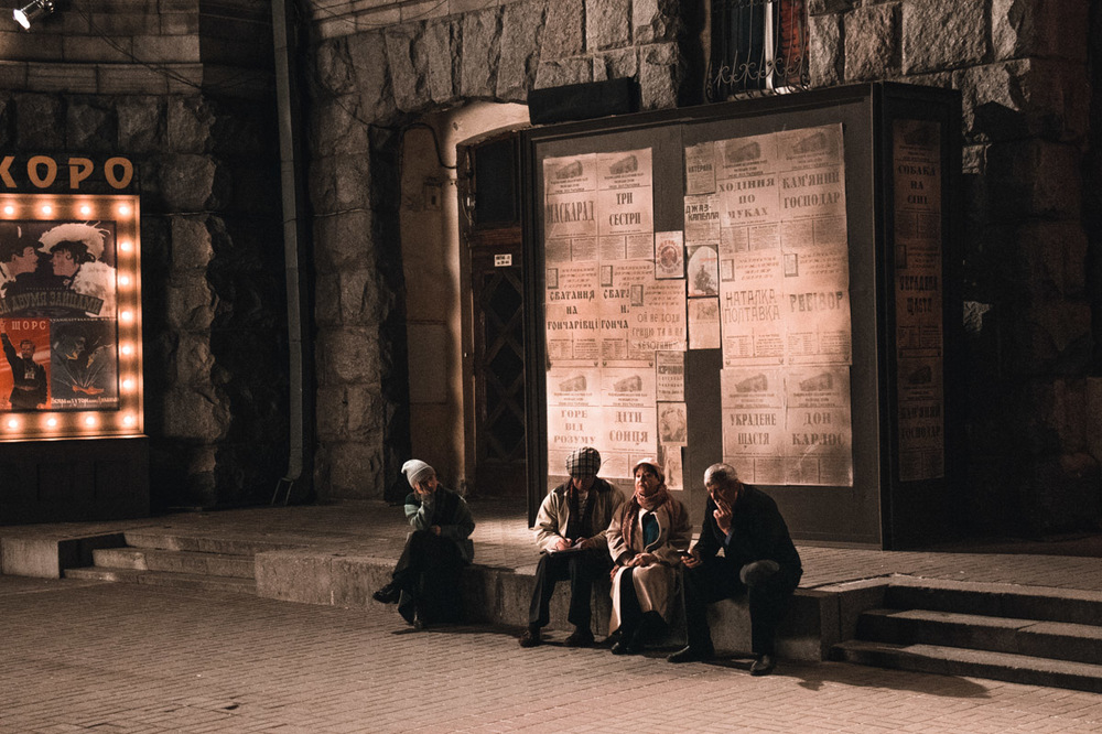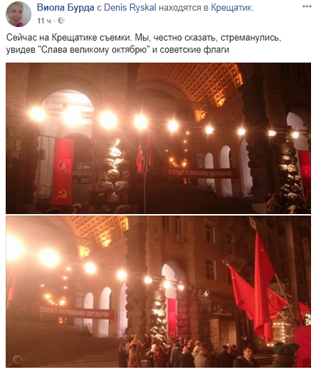 Как выяснилось, красные флаги и транспоранты оказались декорациями к фильму о Василии Стусе "Птах душі", съемки которого начались в Киеве.