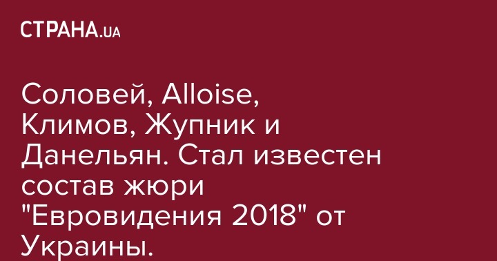 Украинские певицы Кристина Соловей, Alloise, музыкальные продюсеры Виталий Климов, и Артур Данельян, радиоведущий Денис Жупник будут судить участников на международном песенном конкурсе "Евровидение-2018", который пройдет в Португалии. Об этом сообщается на сайте "Евровидения".