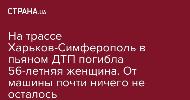 На трассе Харьков-Симферополь в пьяном ДТП погибла 56-летняя женщина. От машины почти ничего не осталось