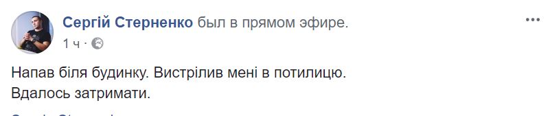 "Напал возле дома. Выстрелил мне в затылок. Удалось задержать", - написал он.