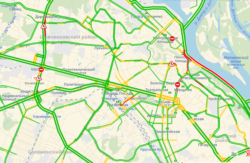 Также напомним, что в городе проходит ремонт на Набережном шоссе и в районе станции метро "Дорогожичи", что также вызывает пробки на дорогах.