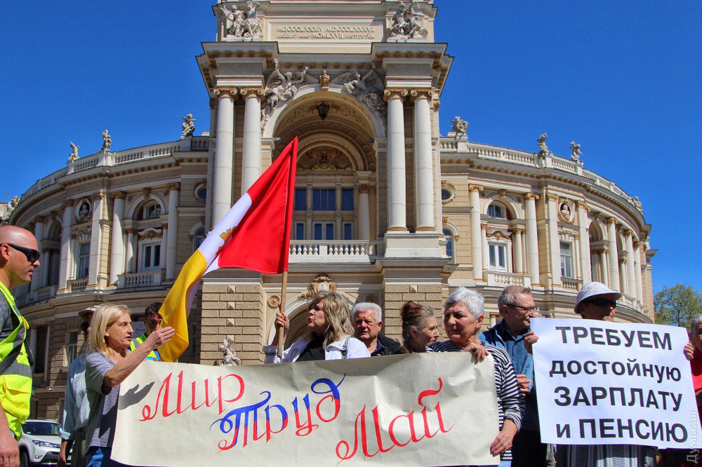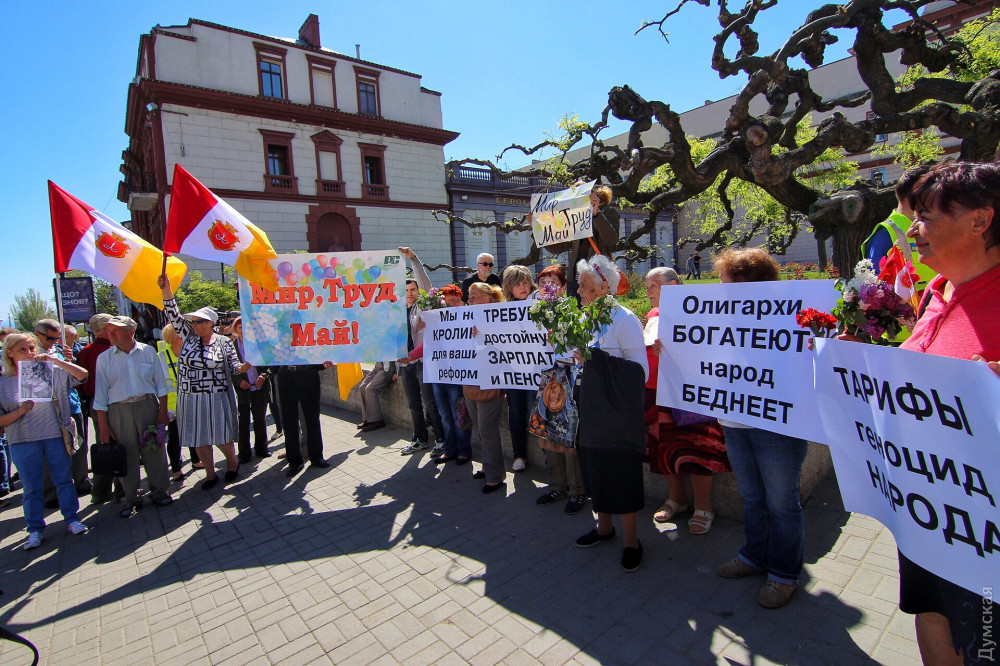 Митинг проходил возле Оперного театра. Его участники потребовали вернуть восьмичасовой рабочий день, бесплатную медицину и высокие пенсии. В это время приглашенный оркестр играл одесские мотивы. Запрещенной в Украине символики на митинге не было.