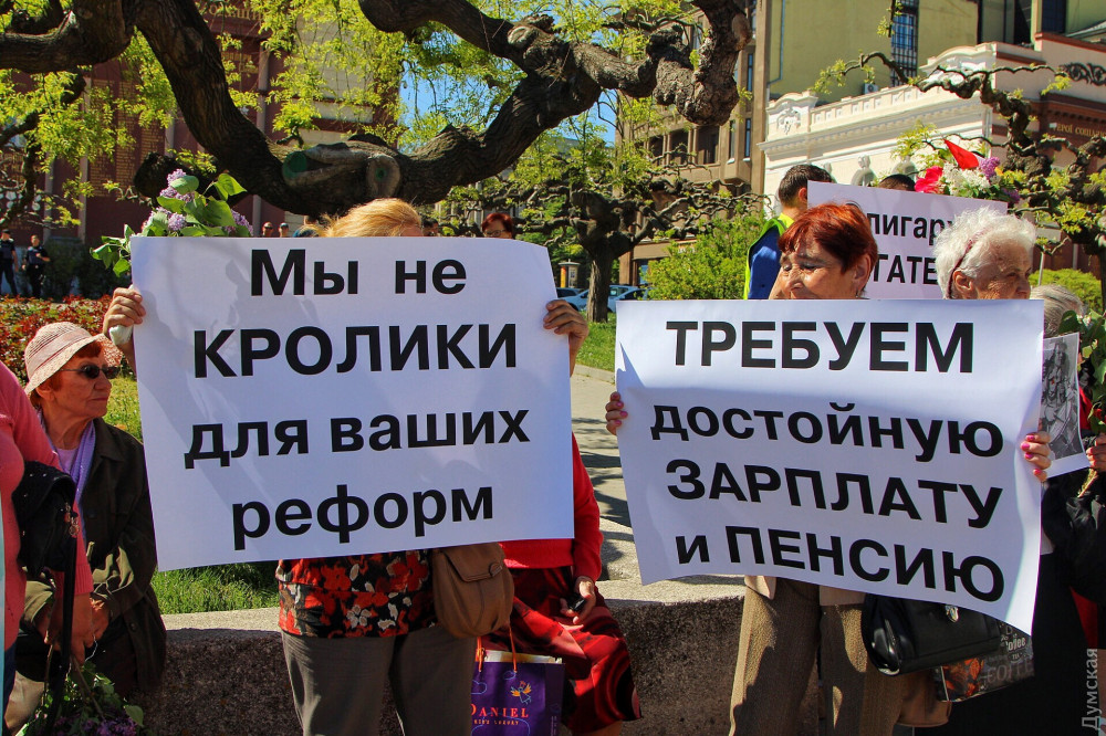 В Одессе сорвали первомайскую демонстрацию, которую организовал активист Антимайдана Морис Ибрагим. На ней в основном присутствовали люди пенсионного возраста. Они несли плакаты с требованиями достойных пенсий и зарплат.