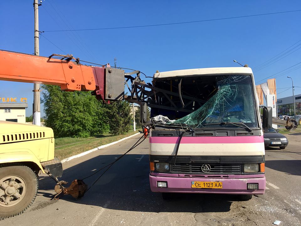 В Черновцах стрела подъемного крана насквозь прошила маршрутку