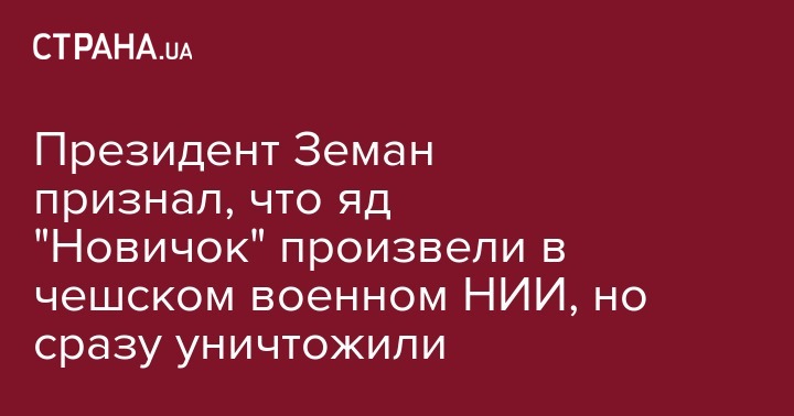 "Поскольку информация СБИ не носит грифа секретности, я могу ее пересказать. В ноябре 2017 года в НИИ минобороны в Брно был тестирован нервно-паралитический яд, который классифицируется как А230. Количество изготовленного яда было очень малым, и после этого он был уничтожен. Это основа сообщения СБИ", - сказал Земан в эфире телеканала TV Barrandov.
