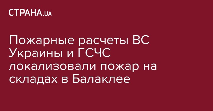 По состоянию на 23:00 четверга, 3 мая пожарные расчеты Вооруженных Сил Украины и Государственной службы по чрезвычайным ситуациям локализовали пожар на складах в Балаклее.