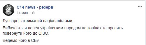 Об этом представители радикалов сообщили в Facebook. Они пишут, что ведут его в СБУ.