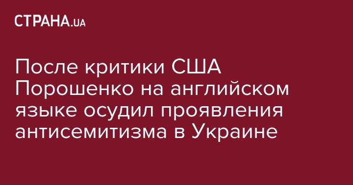 После критики США Порошенко на английском языке осудил проявления антисемитизма в Украине