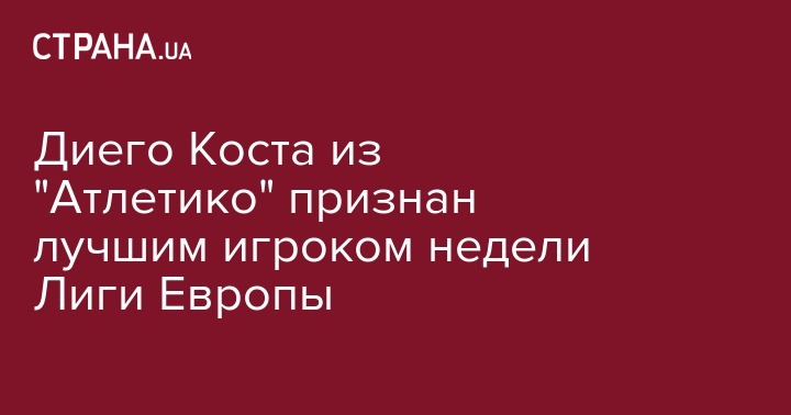"Лучшим игроком недели в Лиге Европы стал форвард "Атлетико" Диего Коста", - гласит официальный аккаунт турнира в Twitter.