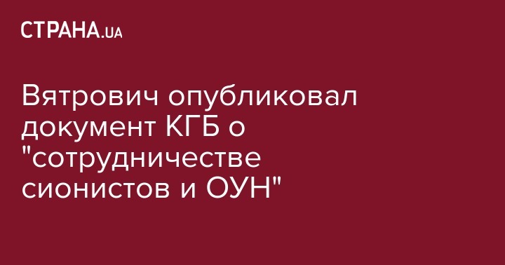 Вятрович опубликовал документ КГБ о "сотрудничестве сионистов и ОУН"