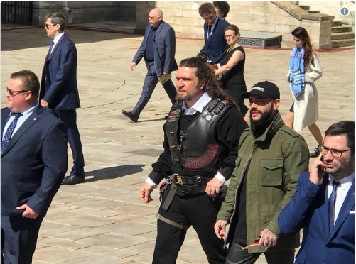 Непривычная картинка: люди в Большом Кремлевском дворце не застыли с торжественно-испуганными выражениями лиц, а активно снимают происходящее на телефоны. Кто-то даже пытается делать селфи в то время, как Владимир Путин идет по красной дорожке. Некоторым из наблюдателей это показалось раздражающим ("А как же сакральность власти?"), а кому-то понравилось (гостей не стали мучить ограничениями, проявив либерализм). В целом, на наш взгляд, получилась интересная картинка, сочетание традиции и модерна.