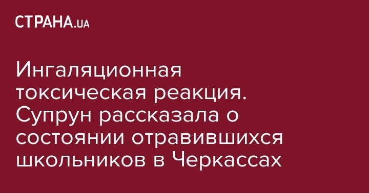 Исполняющая обязанности министра здавоохранения Ульяна Супрун, которая экстренно вылетела вместе с премьер-министром Украины Владимиром Гройсманом в Черкассы, рассказала о состоянии здоровья 50 школьников и 2 учителей, госпитализированных в больницу с подозрением на отравление неизвестным веществом.