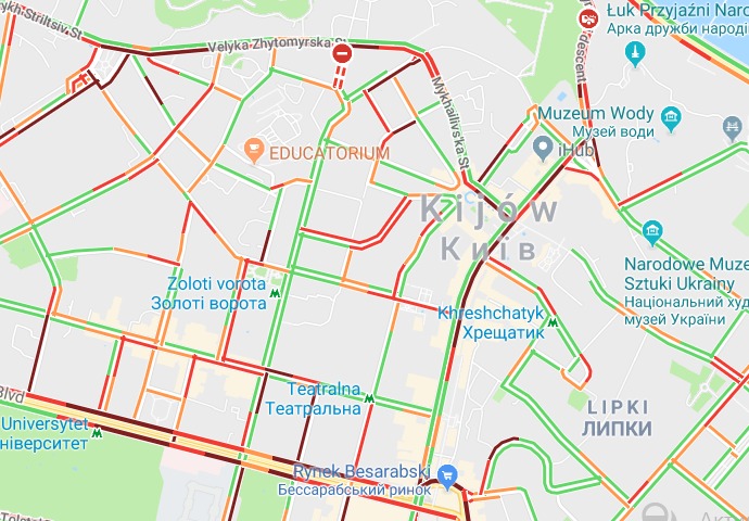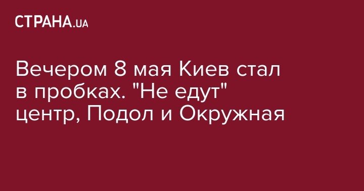 Во вторник вечером, 8 мая, по состоянию на 17:50, пробки в Киеве достигли 7 баллов. Об этом свидетельствуют данные сервиса Google Maps. Затруднено движение на Набережном шоссе.  Традиционно медленно движутся автомобили в районе центральных станций метро: "Льва Толстого", "Театральная", "Университет". Кроме того, около метро "Берестейская", "Шулявская" и "Нивки" также наблюдаются пробки.