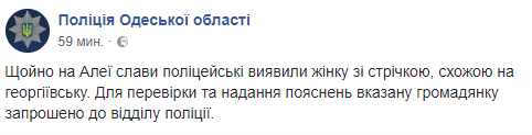 "На Аллее славы полицейские обнаружили женщину с лентой, похожей на георгиевскую. Для проверки и предоставления объяснений указанную гражданку проводили в отдел полиции", - говорится в сообщении.