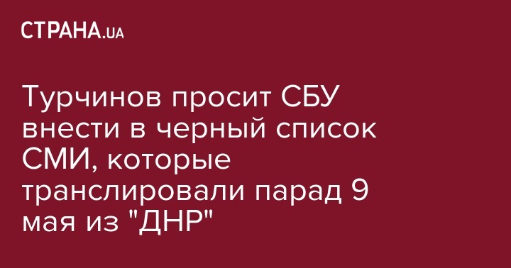 Секретарь СНБО Александр Турчинов просит Службу безопасности Украины провести расследование и добавить в санкционный список электронные СМИ, которые вели трансляцию парада 9 мая из Донецка. Об этом он написал в Facebook.
