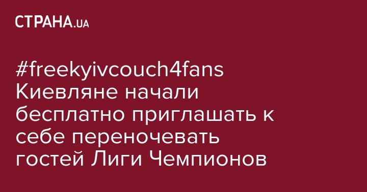 Киевляне стали приглашать к себе гостей лиги чемпионов бесплатно переночевать. Под хештэгом #freekyivcouch4fans  они публикуют в социальных сетях свои приглашения для гостей финала Лиги Чемпионов.