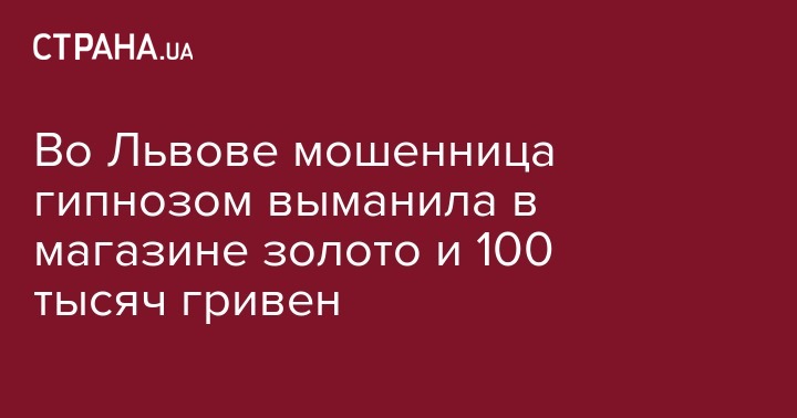 Как сообщают правоохранители, в полицию обратилась 23-летняя львовянка, которая сообщила что рано утром на работе в магазине поддалась гипнозу неизвестной женщины. Псевдопокупательница выманила у продавца магазина 100 тысяч гривен, а также золотые серьги, кольцо и браслет. Общая сумма ущерба устанавливается.