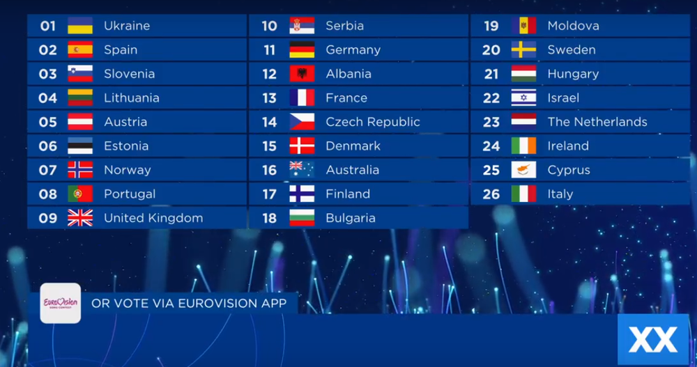 Напомним, что итоговый балл конкурсантов состоит из оценки жюри и оценки зрителей в каждой из 43 стран-участниц Евровидения. После того, как последняя из стран-участниц объявит свои баллы, которые выставили профессиональные члены жюри другим конкурсантам, начнут объявлять оценки от телезрителей.