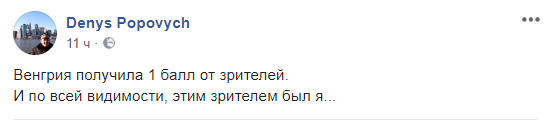 09.05 "Венгрия получила 1 балл от зрителей. И по всей видимости, этим зрителем был я"... - недоумевает журналист Денис Попович.