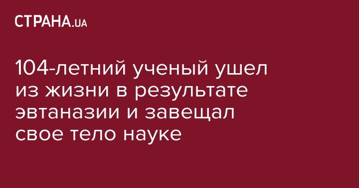 Ученый поехал в Швейцарию в начале мая, чтобы добровольно уйти из жизни.  В Австралии эвтаназия нелегальна, за исключением австралийского штата Виктория, где в 2017 году парламент разрешил применять подобную меру для неизлечимо больных людей.