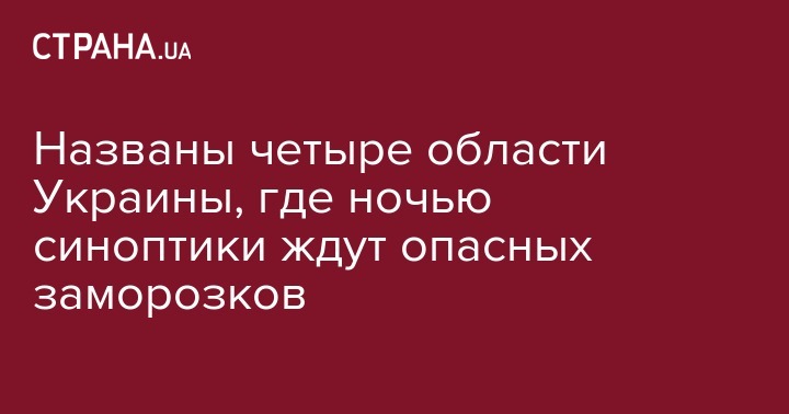 Завтра в четырех областях Украины ожидаются заморозки на почве. Пор этом сообщает Укргидромецентр в Facebook.