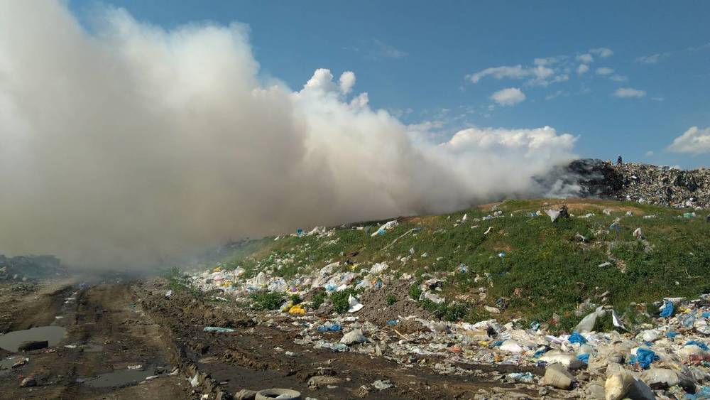 "Сейчас продолжается ликвидация пожара на свалке, площадь которого составляет ориентировочно 1500 кв. м", - говорится в сообщении.