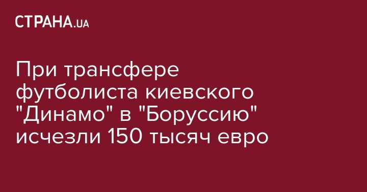 При трансфере футболиста киевского "Динамо" в "Боруссию" исчезли 150 тысяч евро