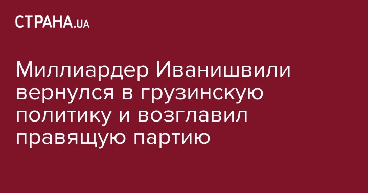 Миллиардер Иванишвили вернулся в грузинскую политику и возглавил правящую партию