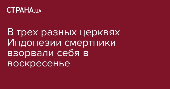 "Предполагаемые террористы-смертники взорвали себя в трех разных церквях в воскресенье в Индонезии. По меньшей мере 10 человек погибли, еще десятки получили ранения", - сообщил представитель полиции Восточной Явы Франса Барунги Мангери.