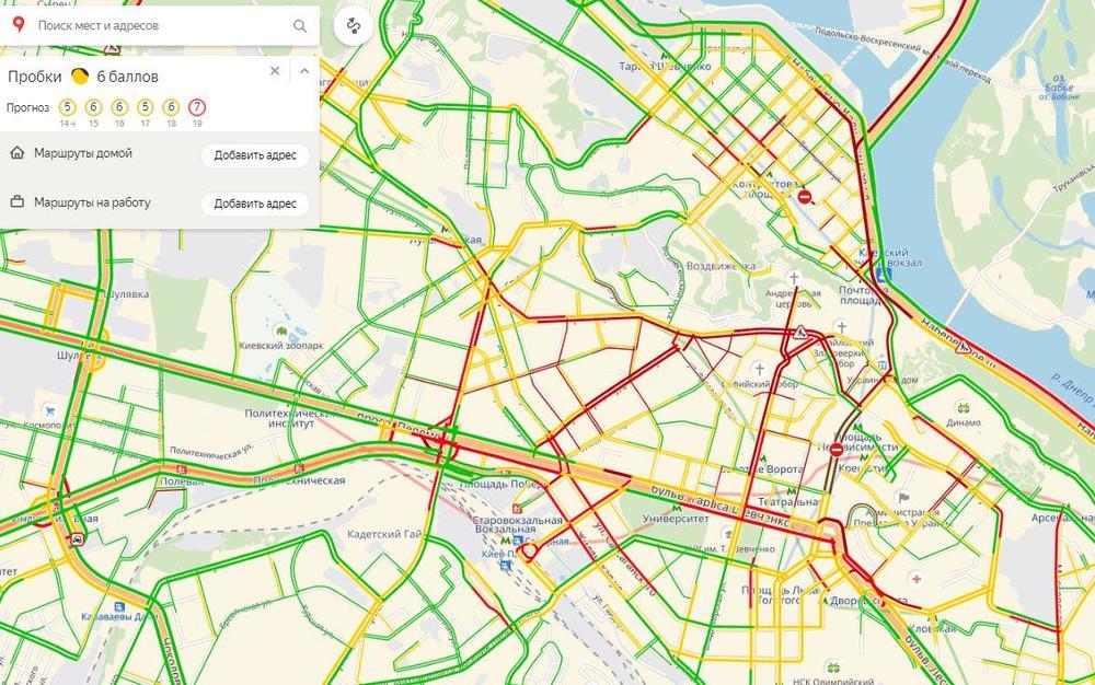 В частности, движение транспорта осложненона проспекте Победы (от улицы Шелуденко), бульваре Тараса Шевченко (от станции метро "Университет"). Масштабные пробки возникли на улице Бассейной, бульваре Леси Украинки и улице Мечникова; на улице Владимирской, улице Прорезной, улице Большой Житомирской и Михайловской. Осложнен проезд на открытой части Крещатика и прилегающей к ней улице Костельной.