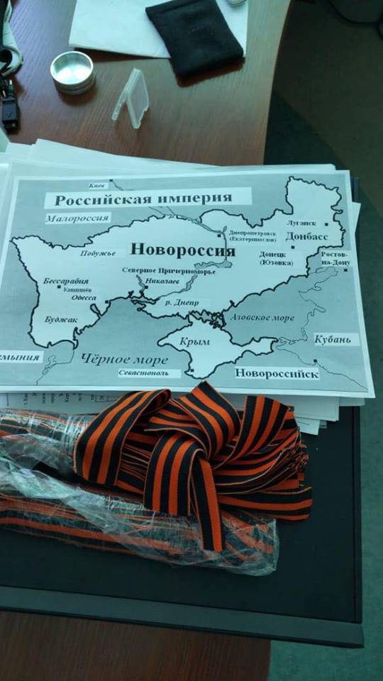 Также СБУ показала документы Вышинского, в том числе ксерокопию его украинского паспорта, деньги в долларах и рублях, а также награды, в том числе "За возвращение Крыма".