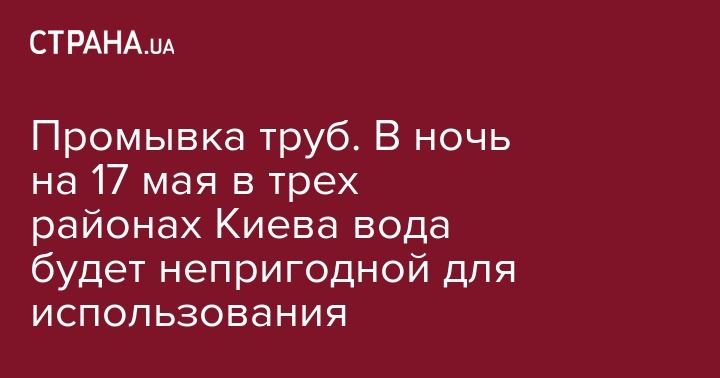 Промывка труб. В ночь на 17 мая в трех районах Киева вода будет непригодной для использования