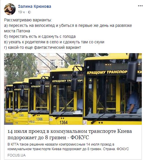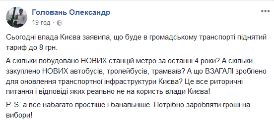 "Сегодня власти Киева заявили, что будет в общественном транспорте поднят тариф до 8 грн.