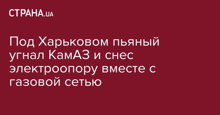 В Харьковской области мужчина в нетрезвом состоянии, угнал грузовой автомобиль "КамАЗ" и повредил линию электроопоры и газовую сеть.