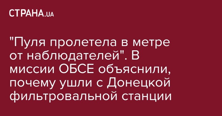 Вместе с тем в миссии подчеркнули, что в соответствии со своим мандатом они готовы способствовать соблюдению режима прекращения огня, однако только стороны могут гарантировать безопасность гражданского населения, в том числе сотрудников Донецкой фильтровальной станции и наблюдателей СММ.
