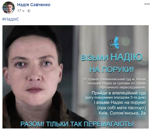 В соцсетях запустили флешмоб с призывом взять Савченко на поруки