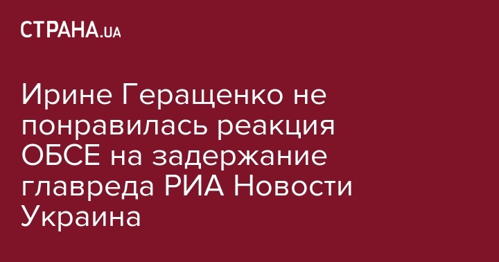 Ирине Геращенко не понравилась реакция ОБСЕ на задержание главреда РИА Новости Украина
