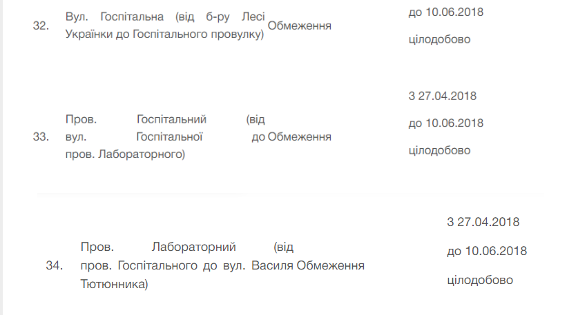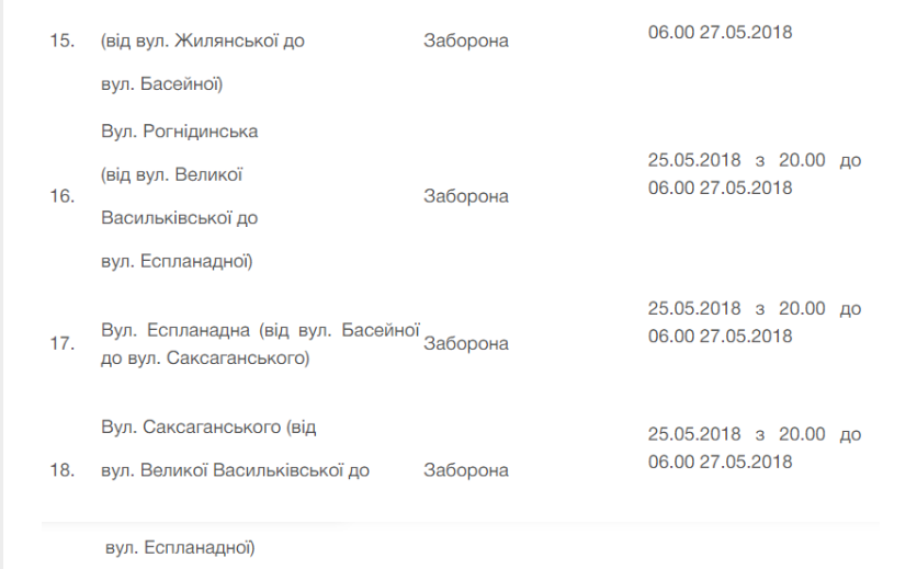 Более детальную информацию об ограничениях движения можно найти ЗДЕСЬ.